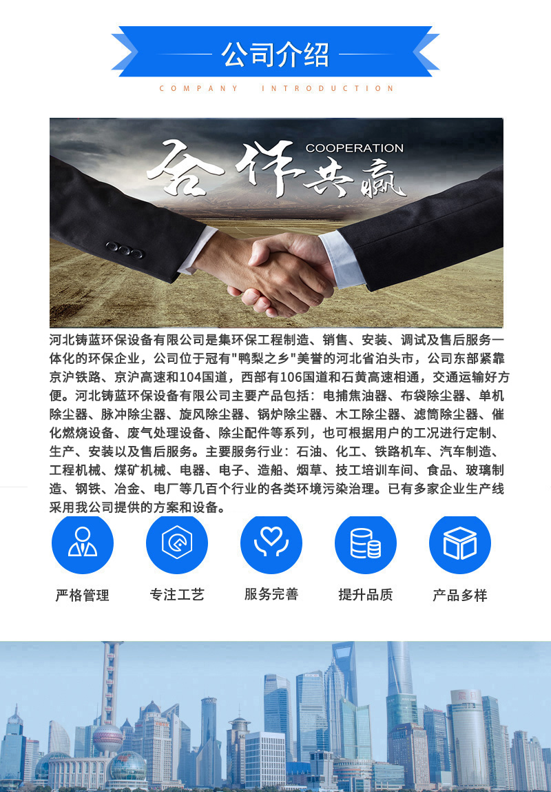 3、同體積除塵器過濾面積相對較大,過濾風速較小,阻力不大;